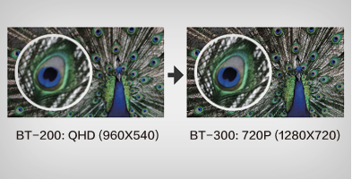 BT-300可以实现1280X720的高清分辨率,可以实现高清画质的播放。