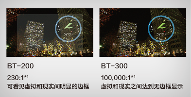 得益于爱普生的硅晶OLED面板,画面显示可达到100,000:1*1的高对比度,相较前代产品有了质的飞跃。硅晶OLED所带来的高对比度和高分辨率,使得画面显示可以达到无边框效果,虚拟图像完全融入现实。