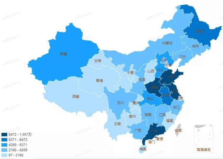 2019年,山东省是植保开云足球络用户访问量最多的地区,访问量达1.1万人,占比9%;广东省和河南的访问量分别是9356和9105,几个省份访问人数差距不大。