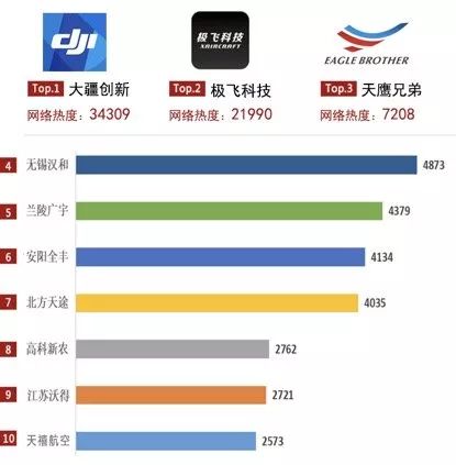 今年虽然还有一些新进入植保无人机的企业,都发布了新的植保无人机产品,且有些价格较低,我们从用户关注度榜单可以看出,虽有多家企业加入,但先入为主,即使在价格战如此激烈的情况下,用户依然对大疆、极飞等企业及其产品关注度较高。