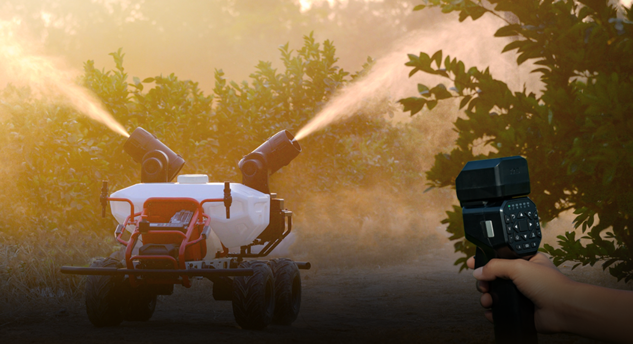 除了与无人机空地配合进行防疫消杀外,极飞R80农业无人车还具有强大的拓展功能:可搭载极飞气流喷雾机,对果林、大田进行高效精准的植保作业;卸掉药箱还可用于种药肥等农用物资与智能农机设备的配载运输;还可搭载极飞 XIoT™ 农业物联系统的智能硬件,进行智能巡田与农情监测,实现农田移动物联。