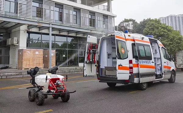 从搬运、装卸设备到配备消毒水到联合作业,全程不到30分钟时间,实际作业不到5分钟就完成了7836平方米的防控消杀。