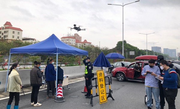 御2行业双光版在经过软硬件调试和不同场景试验验证,可以满足2-3米距离下,对高速路口外地人员、小区高层隔离人员等各类人员的无接触筛查需求,一旦发现温度异常个体,就会通过无人机遥控器屏幕显示体温异常,提醒现场工作人员进一步核查。基本解决了在室外无风无阳光直射环境下,无人机无接触测体温的精度要求,前线执勤人员可以根据初筛结果有针对性的进行体温复核,对于临时设置的检查点和社区体温调查来说,大大提高了效率。
