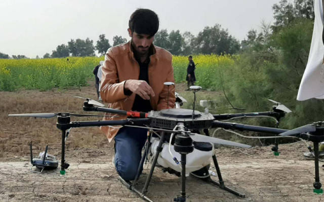 2月16日,在巴基斯坦德拉伊斯梅尔汗(dera IsmailKhan)地区,当地民众启用赛为智能赛鹰SY141HR多旋翼植保无人机,用于当地蝗虫灾害的防治工作。