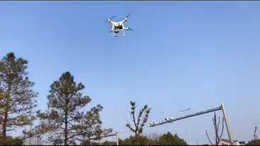 2月24日,在郑东新区双湖花园小区,一架来自河南经贸职业学院的无人机在小区上空利用机载喇叭一遍遍通知:各位居民请注意,本小区今日进行无人机免费消毒喷洒作业,大约需要30分钟时间,请大家关好门窗,收好衣物,不要出门。