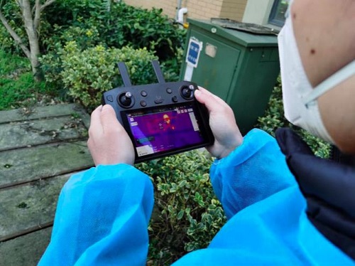 新闻报道上海某小区利用改装后的御2行业双光版无人机进行区民体温监测