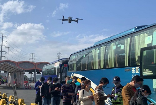 御2行业双光版无人机对返深大巴乘客开展测温工作