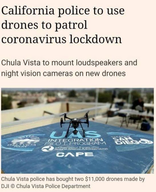 加州警察购买中国造无人机 用于“封城”后的巡逻