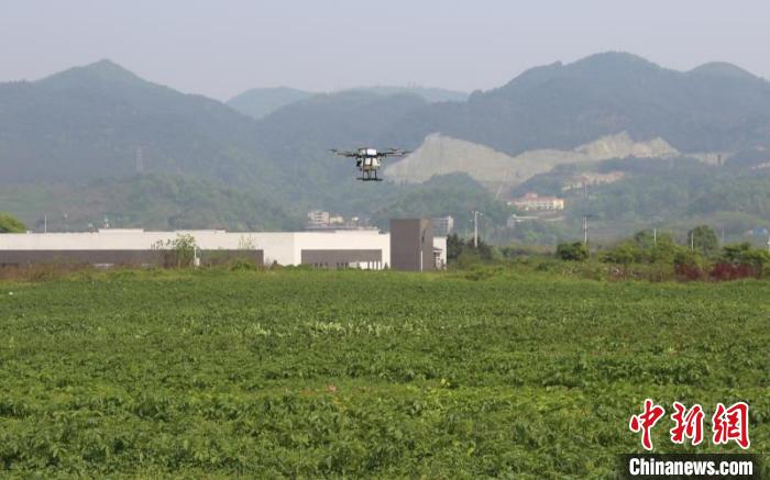 图为重庆首个5G网联植保无人机在重庆农业科学院科研基地试飞成功。 中国移动重庆公司供图 摄