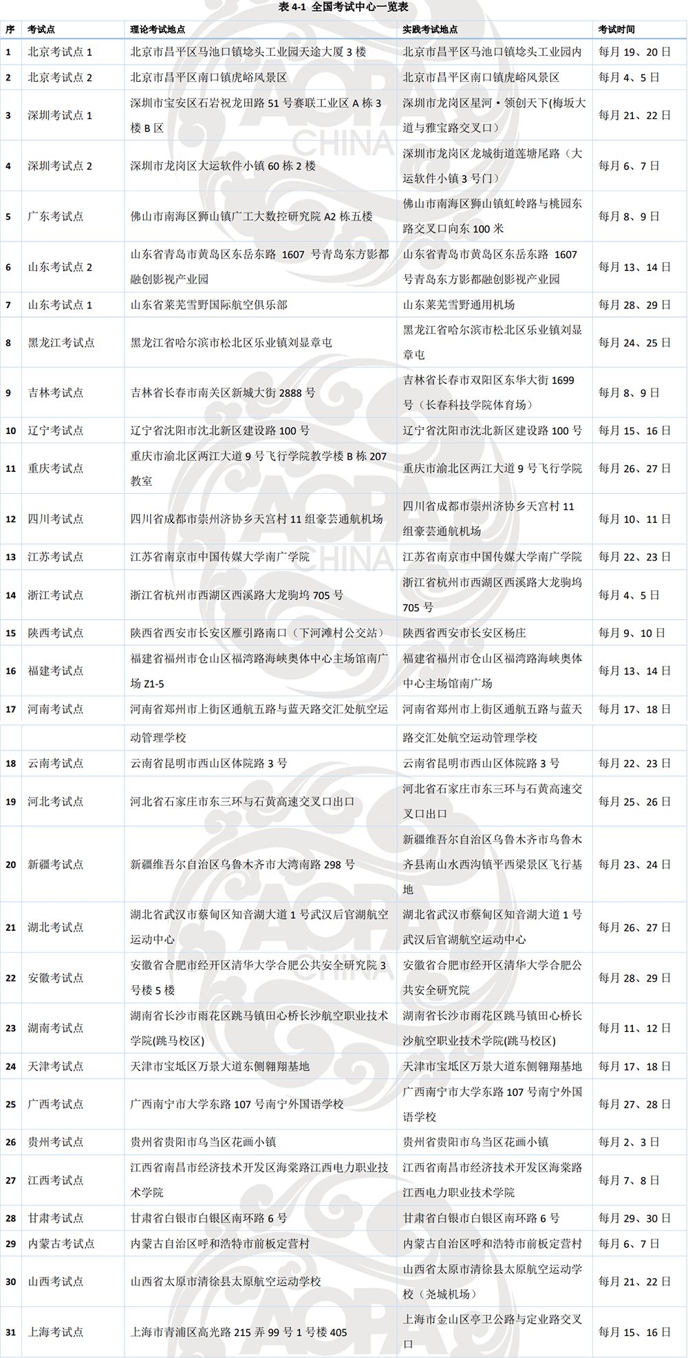 目前全国共有 31 个无人机驾驶员考试中心,考试中心免费为临近的训练机构学员提供理论与实践考试场地。