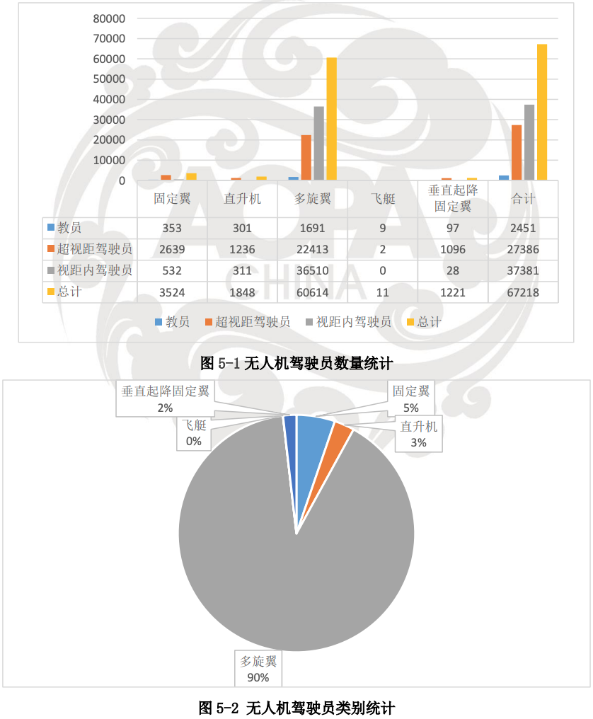 截至 2019 年 12 月 31 日,民用无人机驾驶员证照总数为 67218。持证人主要分布在各民用无人机生产研发企业、相关应用单位以及院校等。