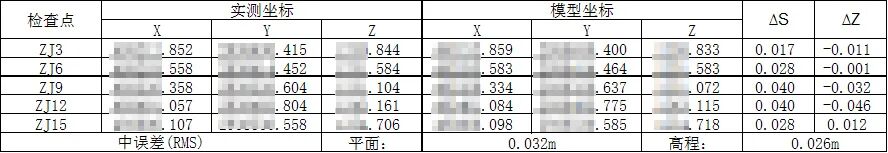 将场外获得的数据导入倾斜数据处理软件内,生成三维模型,模型上测得检查点坐标数据与实测点位数据对比,其误差非常小。满足1:500地籍精度要求。