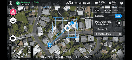 DroneDeploy任务:在飞行过程中,根据需要添加尽可能多的新计划,例如用于捕获站点特定区域的新视频计划,从而可以最大程度地延长飞行时间。
