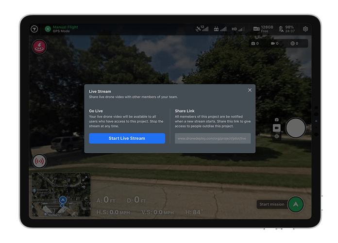 首先在现场的任何人都可以启动DroneDeploy任务,启用实时流,然后发送链接以查看其他有权访问该项目的用户。这有助于快速识别问题,进行协作,并可以加快站点紧急情况的响应时间。