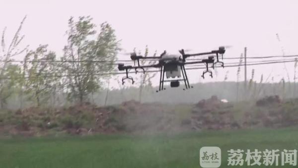 连日来,连云港市赣榆区也在组织动员农户抓住当前关键时期,及时采取防治措施,确保今年小麦优质丰产。4月23号上午,记者在金山镇丁庄村的麦田里看到,操作人员正在操控植保无人机,均匀地把药液喷洒在小麦叶片上,进行赤霉病等病虫害防治工作。