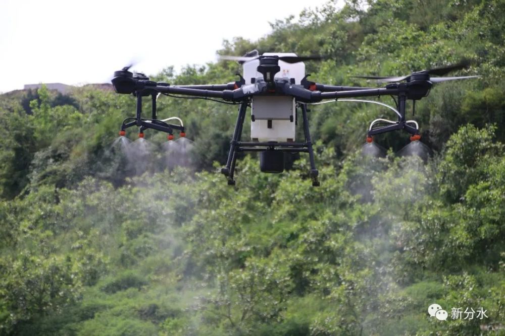 当日下午3时许,在枣园村重庆忠豪山农业开发有限公司柠檬种植园,一架小型的农用植保无人机嗡嗡飞翔,所经之处,洒下的雾化农药瞬间弥漫开来。无人机按照规划的喷洒模块路线,对每一颗果树精准喷药。