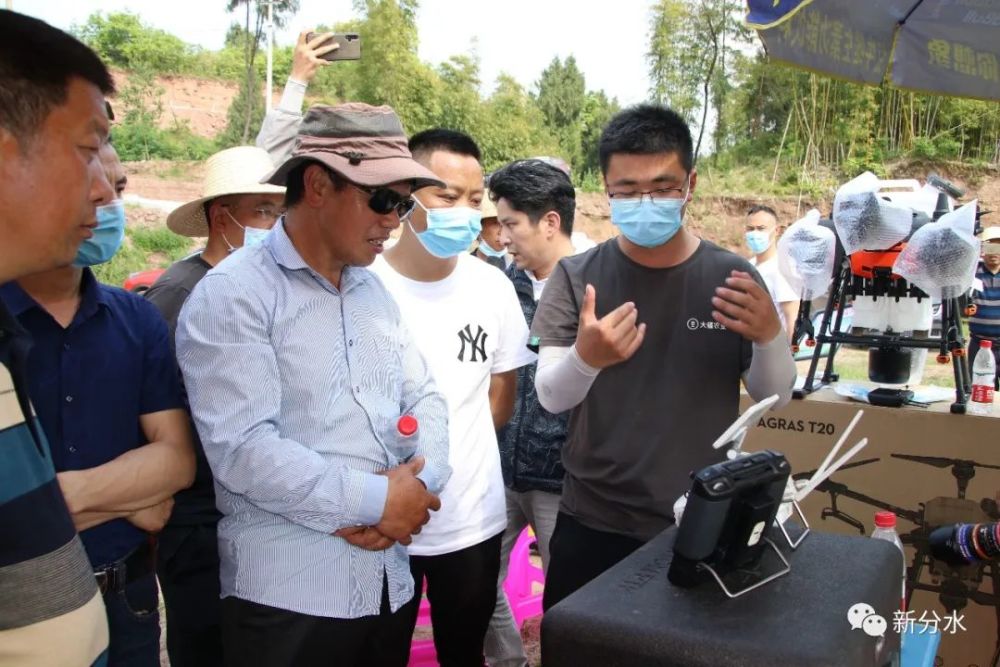 参会业主们认真聆听技术员介绍讲解,观看操作,对心存疑问进行交流,对无人机喷药新技术充满了好奇和兴趣。
