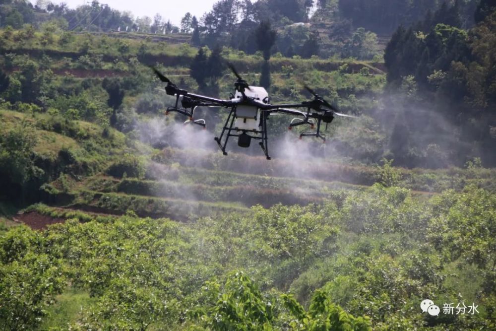 据万州植保果树站的工作人员介绍,今天无人机在山地喷药演示还是首次,根据现场作业的情况看,农药与人分离,可以最大限度保护人体健康。用植保无人机喷药,省人工、省时间,喷施均匀,效果好。特别适合大型果园、苗木花卉种植基地和种粮大户。