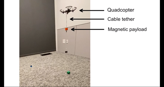 据VentureBeat报道,在这项实验中,一名研究人员驾驶了一架玩具无人机DJI Tello,通过一种系绳和磁性夹持器来捡起和携带小包裹。听起来很简单,但是有各种各样的变量,如果它是自动完成的,可能会影响工作。包裹本身的重量各不相同(研究人员使用的3d打印块重量在10到15克之间)。此外,系绳也很重要。不同长度的绳子会产生不同程度的震动,从而导致无人机偏离航线。
