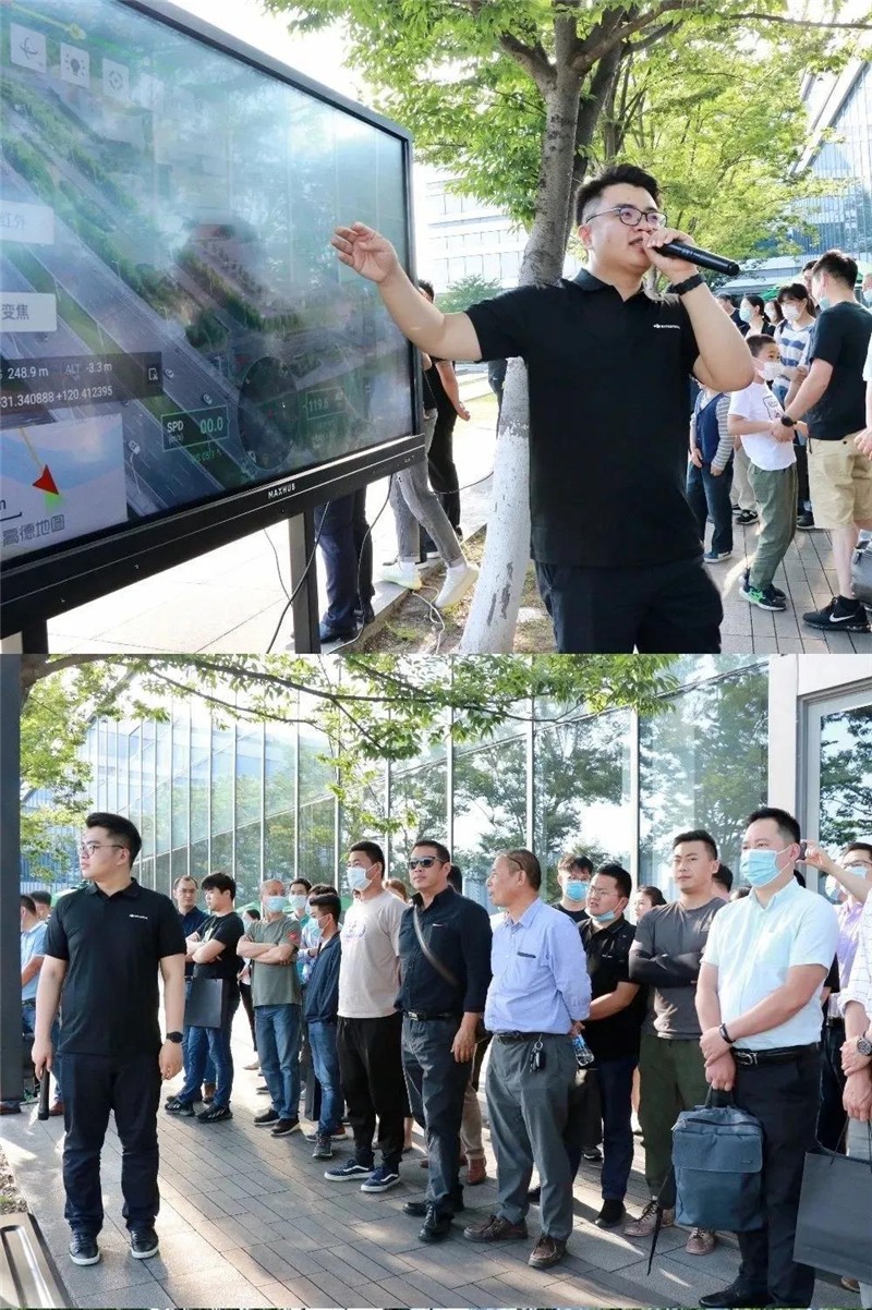 会议最后,与会各位到户外观看新品功能外场飞行演示,更加直观地感受了本次大疆推出的新产品——经纬M300RTK无人机在避障系统、续航能力和图传性能的提升。