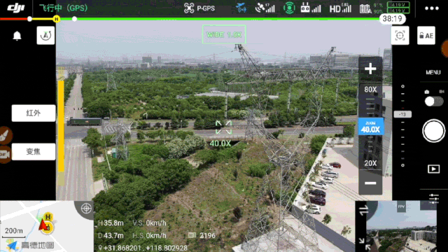 而它强大的变焦能力,加上 2000 万超清像素,保证了飞机即使在距离 15 米的情况下,也可以清晰查看柱上设备情况,为线路验收、随工检查、故障巡视可提供强力支撑。