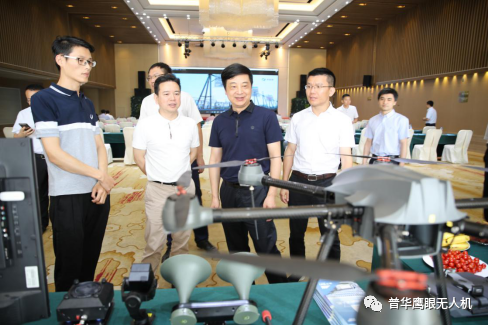 (图为鹰潭高新区党工委书记李卫国、鹰潭高新区管委会主任杨鹏观看普华鹰眼产品,对普华鹰眼表示高度认可)