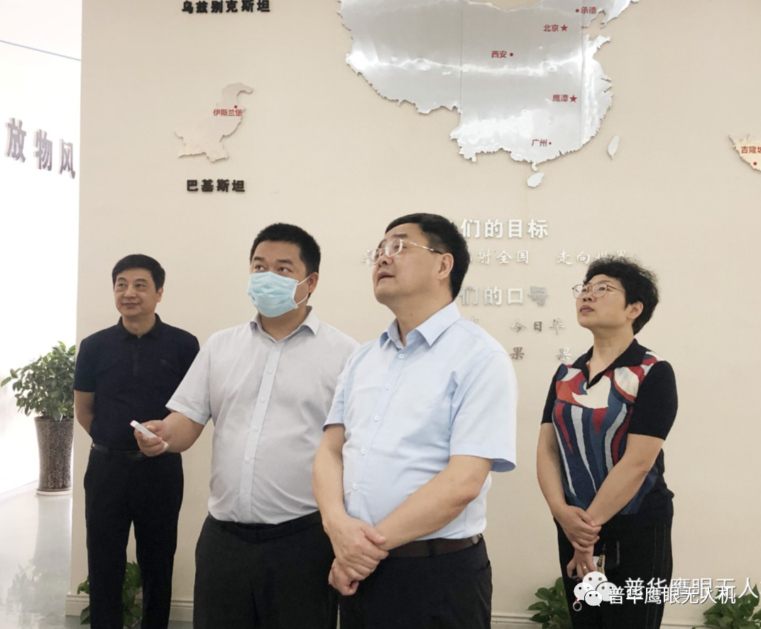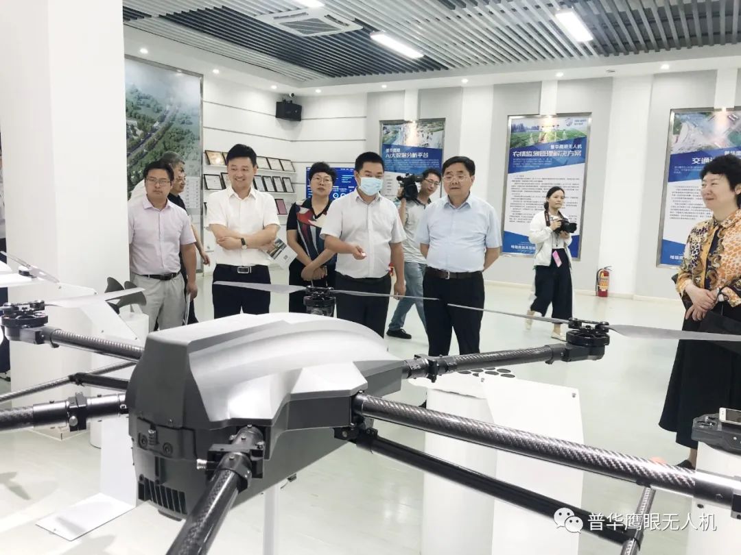 在吴向阳的陪同下,曹国庆一行人详细参观了公司荣誉墙、生产车间、无人机展演中心等。当看到普华鹰眼的无人机指挥车,垂起、六旋翼无人机,机器人以及无人机服务平台等科技成果,曹国庆频频点头赞许,他表示省内有这样的高新技术企业而感到欣慰。