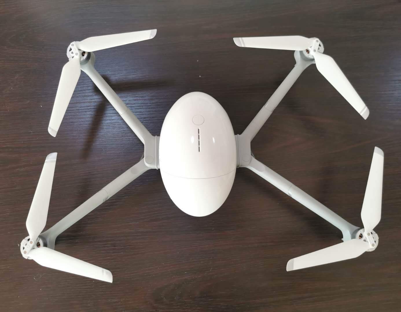 开箱后,首先映入眼帘的是一颗洁白圆润的“小巨蛋”大小如鸵鸟蛋一般,握在手中不是食欲而是满满的科技感。在这里我们有看到除了“小巨蛋”之外还有遥控器、一对带桨叶的机臂、可替换的飞行螺旋桨、充电包和手持腕带等相关配件。