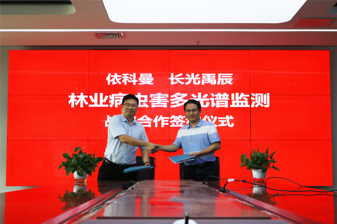 此次战略合作签约仪式上,长光禹辰与依科曼建立了战略合作伙伴关系,双方将在林业病虫害多光谱监测技术方面进行深度合作,向政府和行业用户提供基于小型固定翼无人机、小型多旋翼无人机平台的松材线虫病疑似疫木监测技术及软硬件系统解决方案。
