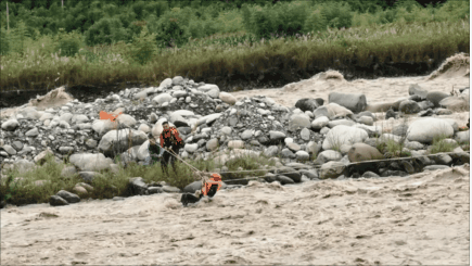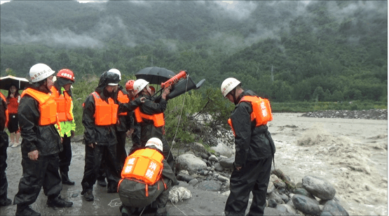 救援人员经过多次尝试通过救援绳索靠近被困群众,因水流太急,救援绳索与水面高度较低,龙门山镇政府紧急调度一台装载机,利用装载机将救援绳索抬高。经过救援人员8小时的紧张救援,2名被困群众成功被救上岸。