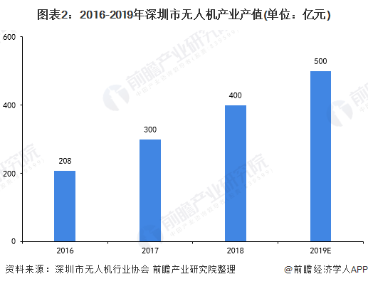 深圳是我国较早从事无人机产品生产和技术研发的城市,发展至今已成为全球无人机最重要的生产基地。目前,深圳市无人机产值超过400亿元,初步测算2019年达到500亿元。深圳工业级无人机占国内60%的市场份额;全年无人机出口180亿元,占据全国八成左右的份额,以消费无人机、植保无人机、行业无人机、玩具无人机及配套产品为主。从全球范围来看,无人机的需求主要集中在欧美地区,以深圳企业为代表的消费级无人机生产企业,成为全球消费级无人机的主要提供商,输出产品达全球的70%,行业级无人机也占有较大份额。