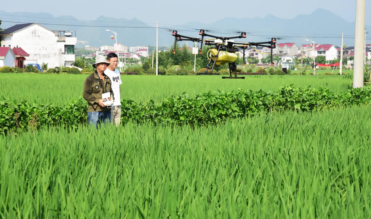 目前是单季晚稻抽穗生长期,也是稻飞虱等病虫害高发期。8月17日,稻府农业开发有限公司利用植保无人机,对大同镇三村村等地流转的1200多亩单季晚稻进行病虫害防治,每小时可喷施80亩粮田,既省工省时,又节本增效。