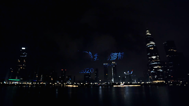 无人机首先在夜空中组成
