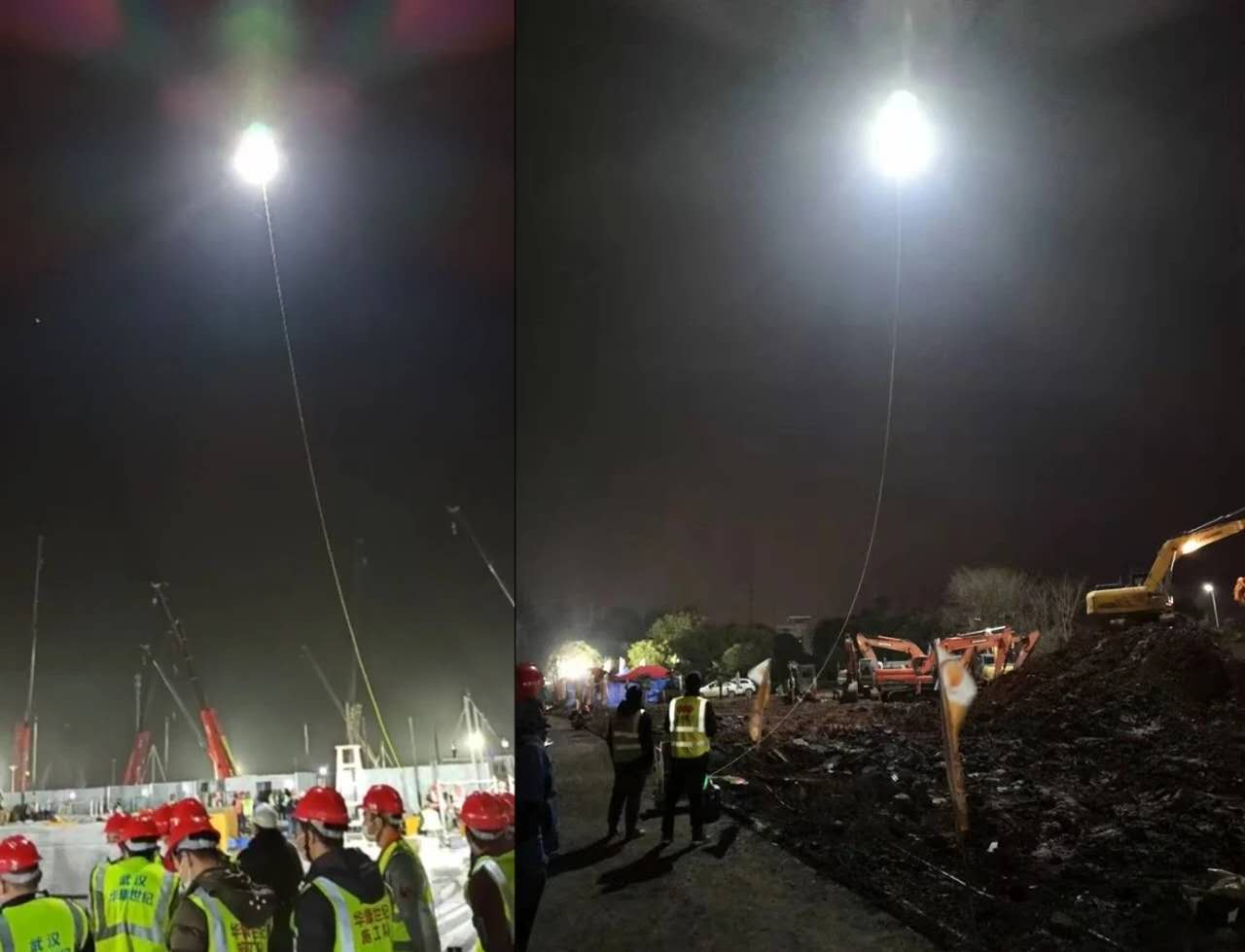 火神山工地:六架无人机极客桥系留600W照明无人机腾飞在举世瞻目的火神山上空,把整个工地照得如同白昼,让紧急受命的中建三局火神山建设施工队迅速解决了工地的照明问题,缓解了因工时紧急一时跟不上的电力照明。
