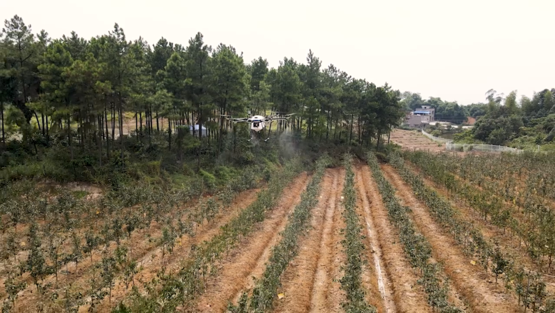 重庆市农业科学院科研基地,工作人员在办公室电脑上点击“起飞”,远处一片农田上,天途5G网联植保无人机马上飞向空中,来来回回给农作物喷洒农药。仅仅3分钟,就完成了3亩地的农药喷洒任务,作业效率比人工高了30倍。