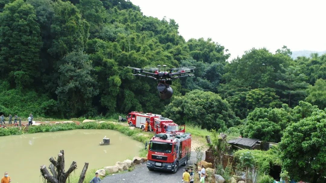 (图示为挂载MP140喊话器的无人机在进行灭火指挥)
