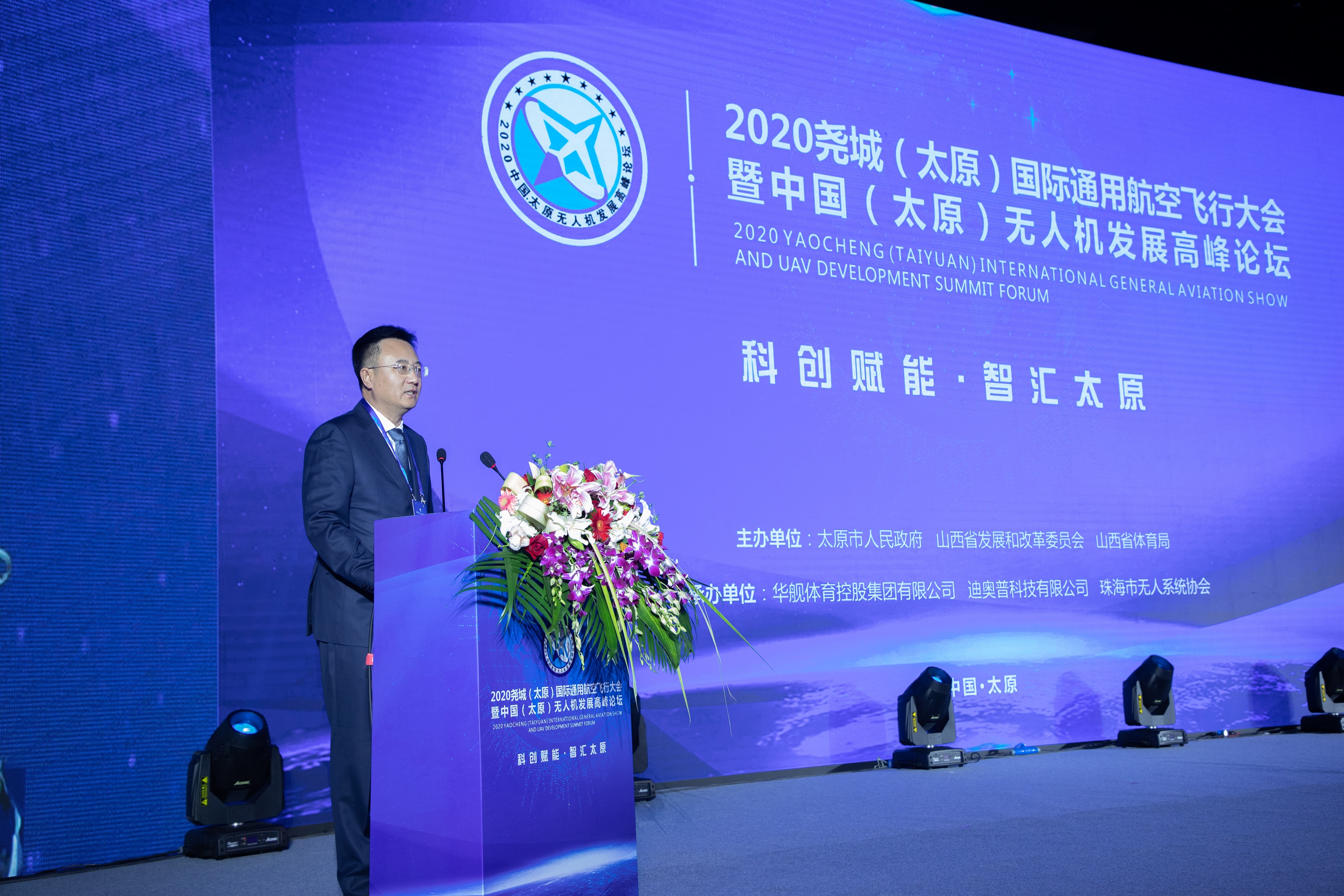 2020年9月29日,2020尧城(太原)国际通用航空飞行大会暨中国(太原)无人机发展高峰论坛在山西体育中心顺利举行。本次论坛主题为“科创赋能 智汇太原”,由太原市人民政府、山西省发展和改革委员会、山西省体育局联合主办,由华舰体育控股集团有限公司、迪奥普科技有限公司、珠海市无人系统协会联合承办。