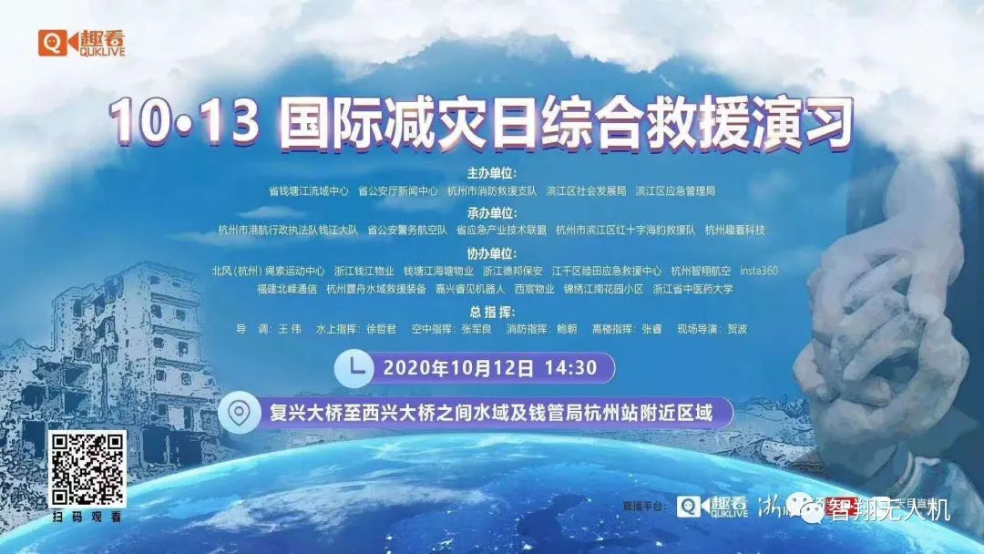在第31个国际减灾日到来之际,省钱塘江流域中心、省公安厅新闻中心、杭州市消防救援支队、滨江区社会发展局及滨江区应急管理局这几家主办单位及其他承办、协办单位一起组织举办了——10.13国际减灾日综合救援演习。