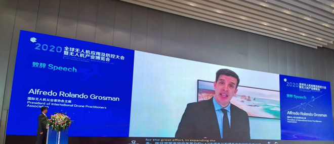 由于疫情原因,国际嘉宾无法到达现场,大会主席欧洲太空项目发展顾问、欧洲航空研究协会理事Fulvia Quagiotti(富尔维娅·夸吉奥蒂)女士,大会主席国际无人机从业者协会主席Alfredo Rolando Grosman(阿尔弗雷多·格罗斯曼)先生,通过视频形式进行致辞,预祝本次大会取得圆满成功。
