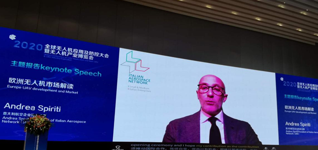 意大利航空企业协会主席 Andrea Spiriti (安德里亚·斯皮里提)先生因疫情原因未到现场,通过视频对欧洲无人机市场进行了解读。