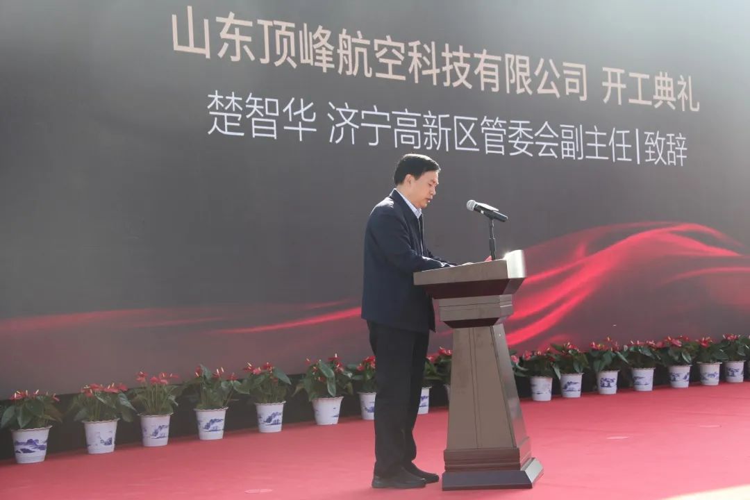 在开工庆典仪式上,济宁市相关领导、峰飞董事长田瑜先生分别对山东顶峰航空科技济宁生产基地的落成作出高度评价。