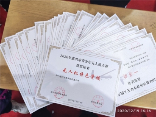 印通小学航模队由吴丹副校长、范利玛等5位老师带队参赛。经过一天的角逐,航模队的健儿们在本次大赛五个单项中获得三个第一名、六个第二名的好成绩,并获得“嘉兴市无人机特色学校”称号。