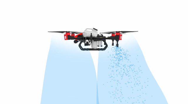 这里就涉及到农业无人机作业原理了。目前的农业无人机主要有两大功能,也就是液体药肥的喷洒和固体颗粒的播撒。我们就拿喷洒农药和化肥来举例。