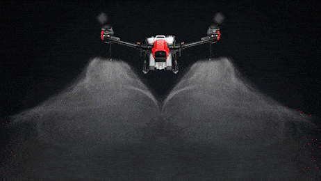 V40 的最大起飞重量约为48 公斤,两个螺旋桨能产生 48 公斤的下旋气流,两个喷头置于螺旋桨正下方,在5 米的飞行高度下,喷幅能够达到10 米以上,实现了100%的气流利用率。