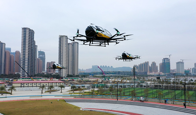 图:EH216自动驾驶飞行器在珠海横琴实现多机载客首飞