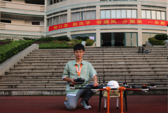 除了参加学院开设的无人机操纵课程,他自学无人机设计类知识,无人机开源资源虽多,但他不知疲倦,求知若渴。三年时间,他自学空气力学、机械结构绘制、飞控电调电路设计、PIDFOCRPM滤波算法、智能识别算法等,现已实现无人机自动识别,投递/拾取外卖,他的目标是让无人机实现自由简易的集群控制。
