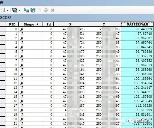 赋高程值以后,属性表里可以看到多了一个高程字段: