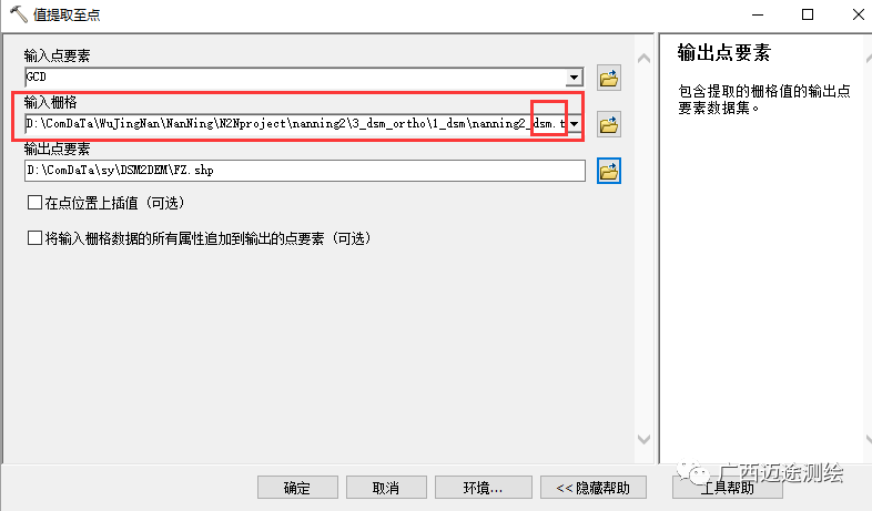 输出点要素:提取高程值以后的shpfile点文件存放路径