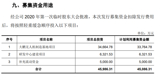 可见,产能不足已经成为限制纵横股份得到更快、更高发展的瓶颈。在本次上市后,纵横股份将斥资3.38亿元用于建设“大鹏无人机制造基地项目”,该项目是由公司全资子公司纵横鹏飞实施,该公司拟在成都市天府新区新兴街道孔雀村九、十、十一组,新建总建筑面积约 54530.99 ㎡的制造基地,同时引入智能制造设备及高端测试设备,扩大公司产品产能并调整优化产品结构。