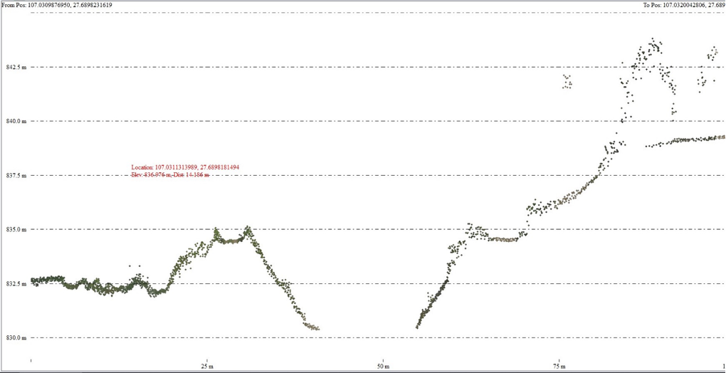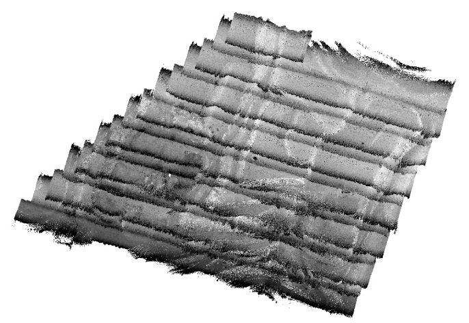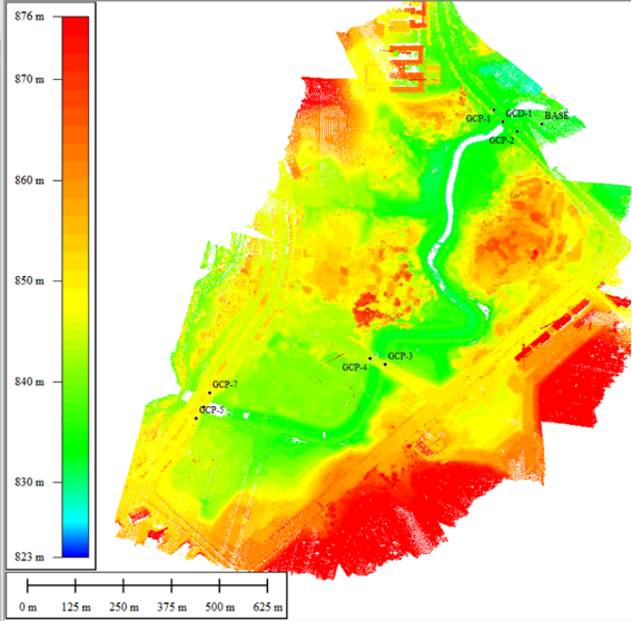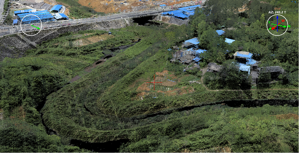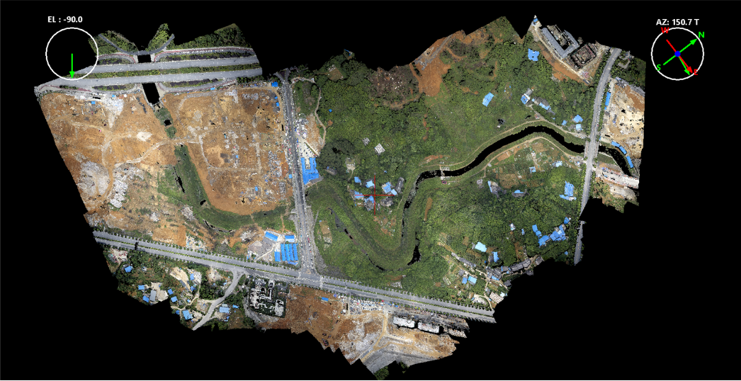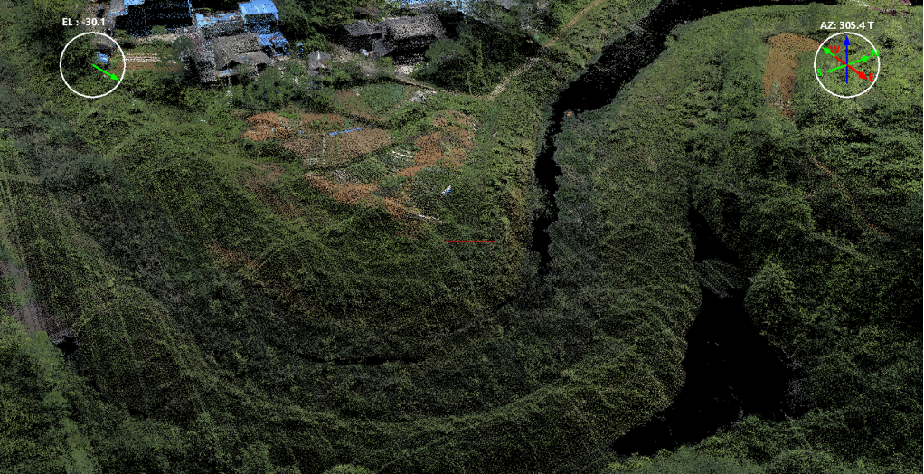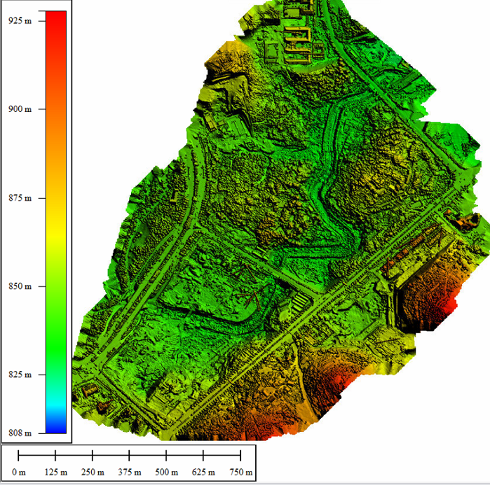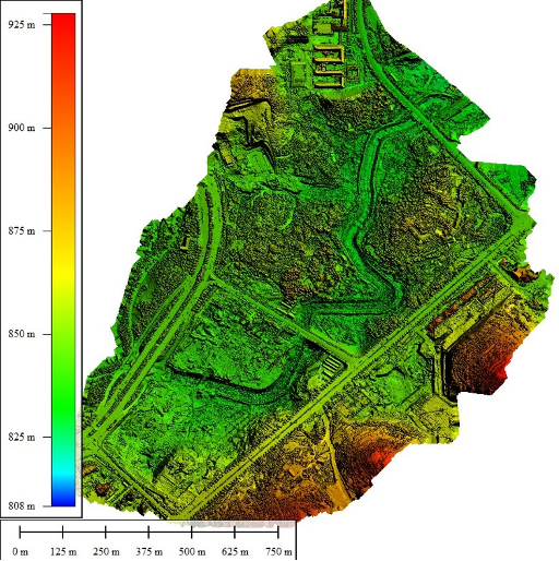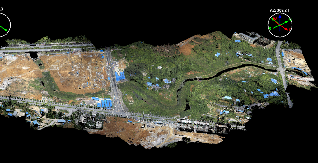 两条航带的噪声包络线必须保持一致,必须混合两条航带,不得使一条航带高于另一条航带。在该实测项目中,Microdrones 使用了 mdLIDAR3000LR 无人机集成系统,在演示区域飞行1个架次,共扫描0.772平方公里,飞行高度300米,采集了GNSS数据,机载激光雷达原始数据,惯导数据。经过处理得到了该区域的数字三维点云,点云密度为每平方米58个点。为了正确评估测绘成果的准确度,Microdrones 采用了以下方法:- 使用Global Mapper 软件,导入Las 格式的数字三维点云。